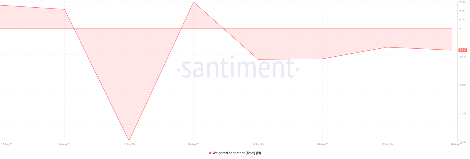 When assets’ weighted emotions are negative, the overall market sentiment measured from social data is bearish. This suggests that PI traders and investors remain pessimistic, which can be considered in the short term for the price performance of assets.