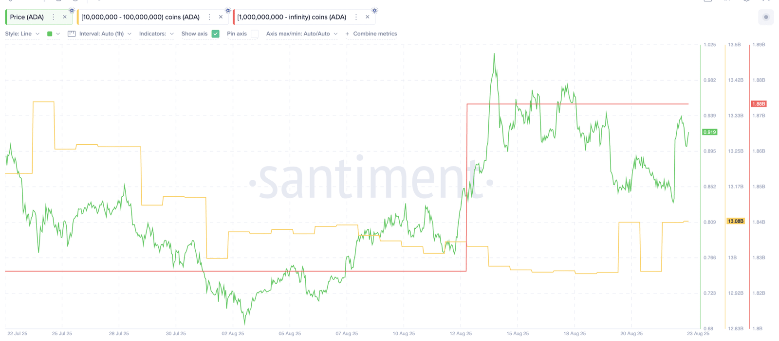 Meanwhile, the Mega whales, which have more than 1 billion ADA, had already moved in early August, raising Stash from 1.82 billion to 1.888 billion ADA. An increase of about 60 million ADA, worth about $55.8 million.